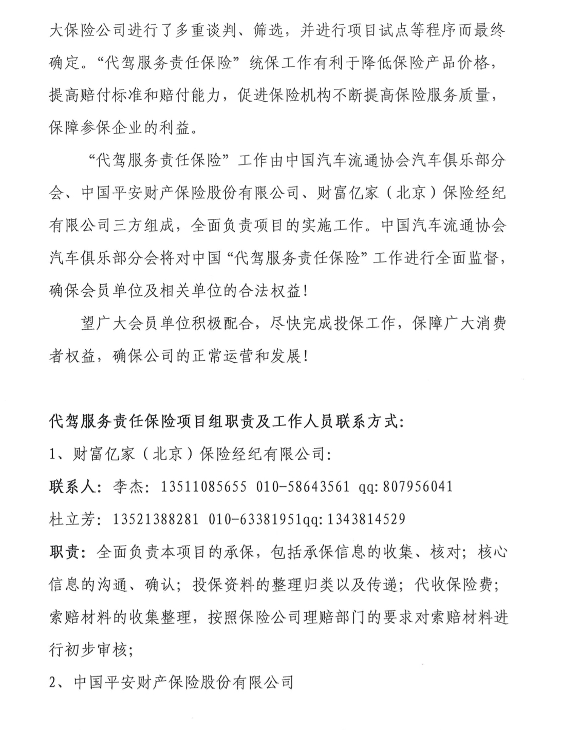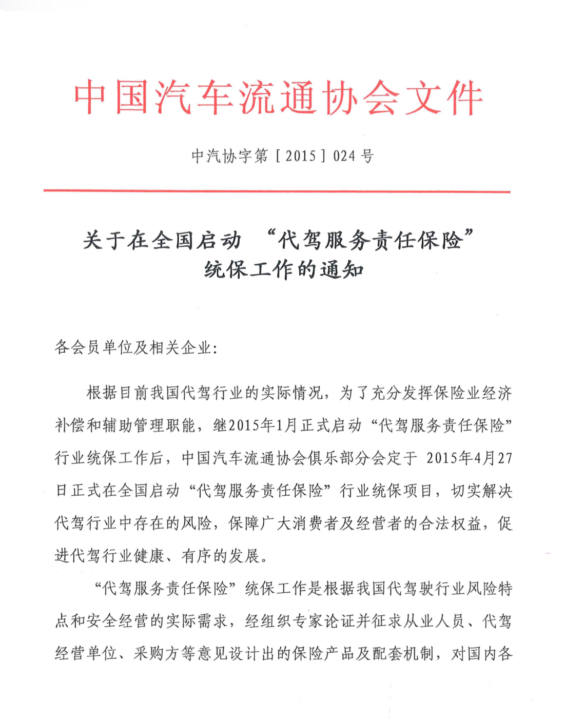 关于在全国启动“代驾服务责任保险”统保工作的通知