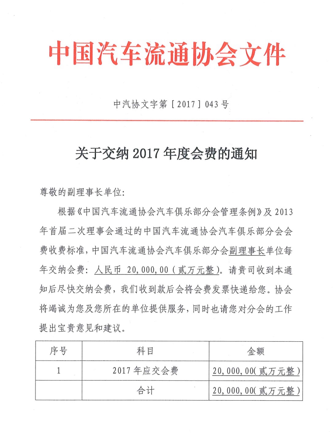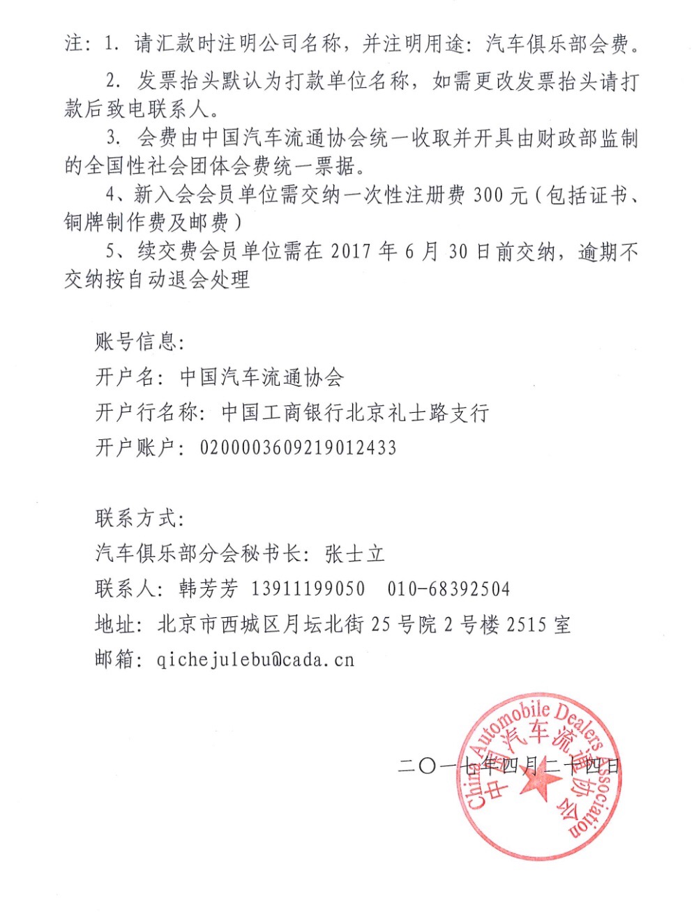 关于交纳中国汽车流通协会汽车俱乐部分会2025年度会费的通知(后附最新会员名单,同步更新)